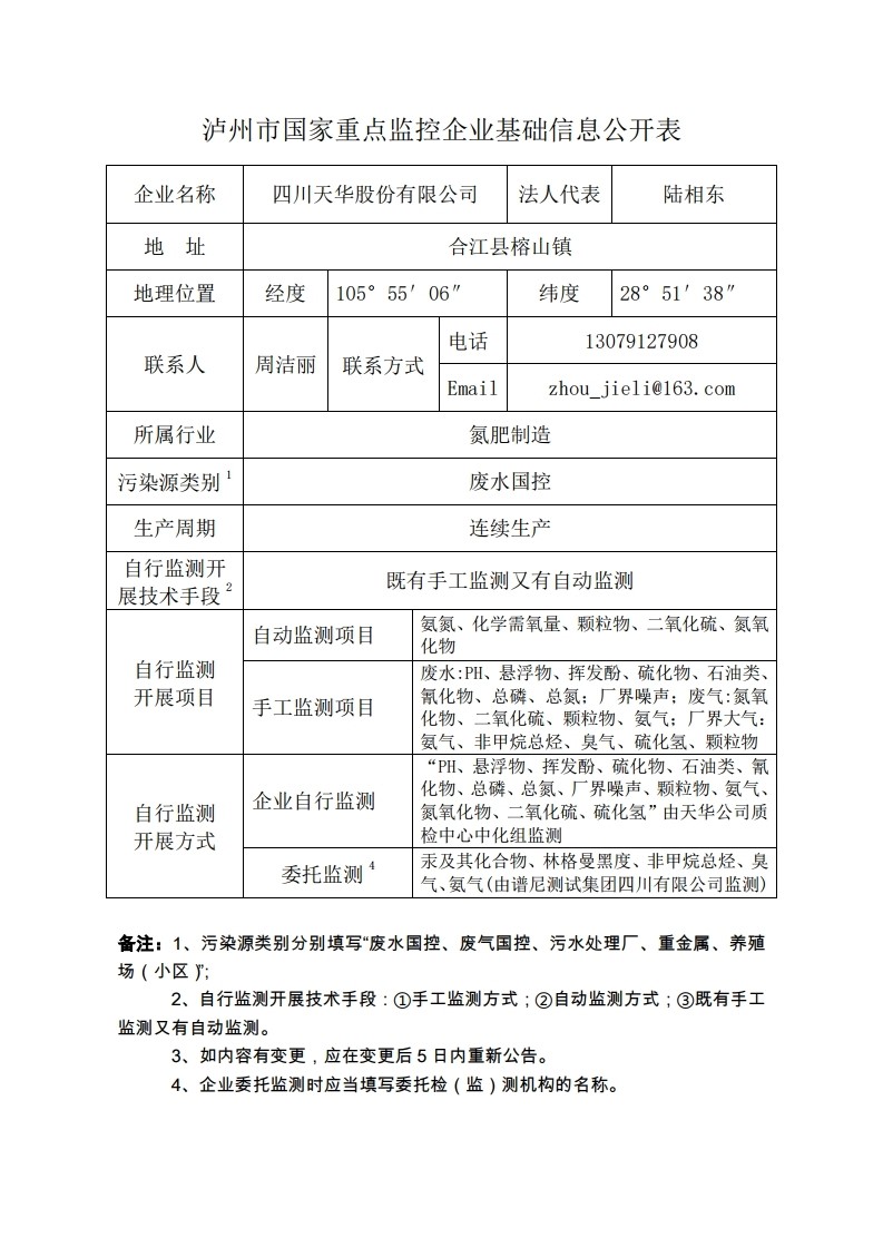 四川天華股份有限公司廢水監(jiān)測(cè)數(shù)據(jù)公示表