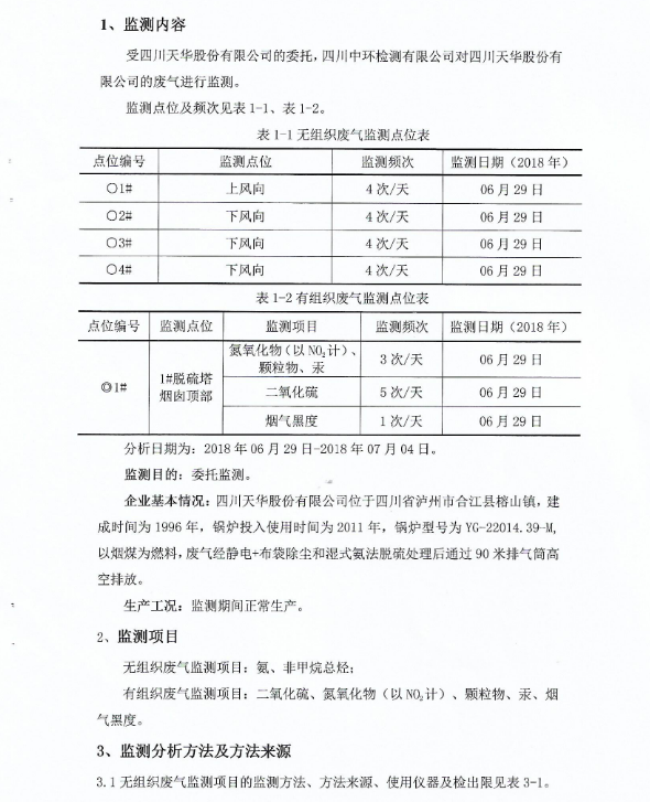 四川天華股份有限公司動力車間1#脫硫塔2018年1季度廢氣委托監測報告