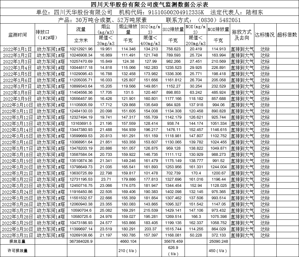 四川天華股份有限公司2022年3月廢氣監測公示