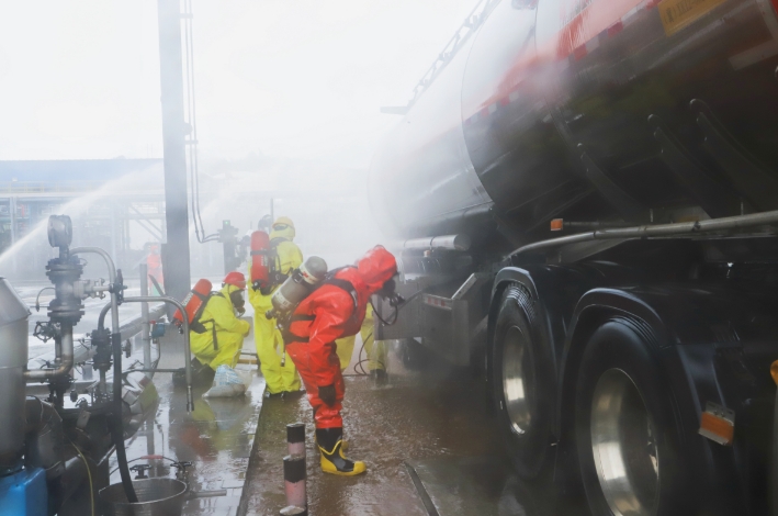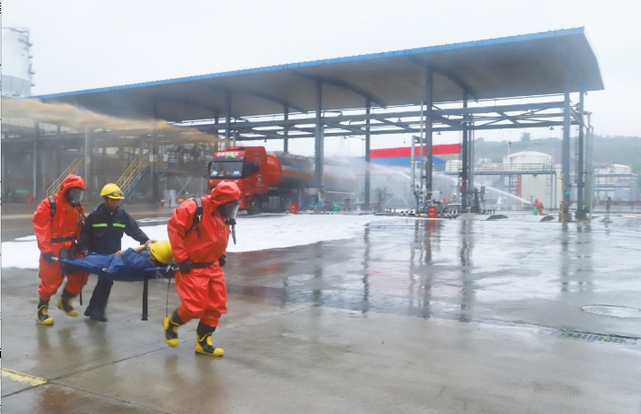 接到報警后,集團立即啟動綜合應(yīng)急預(yù)案,圍繞消防救援、泄漏控制、現(xiàn)場堵漏、醫(yī)療救援以及輿情防控等措施展開演練。
